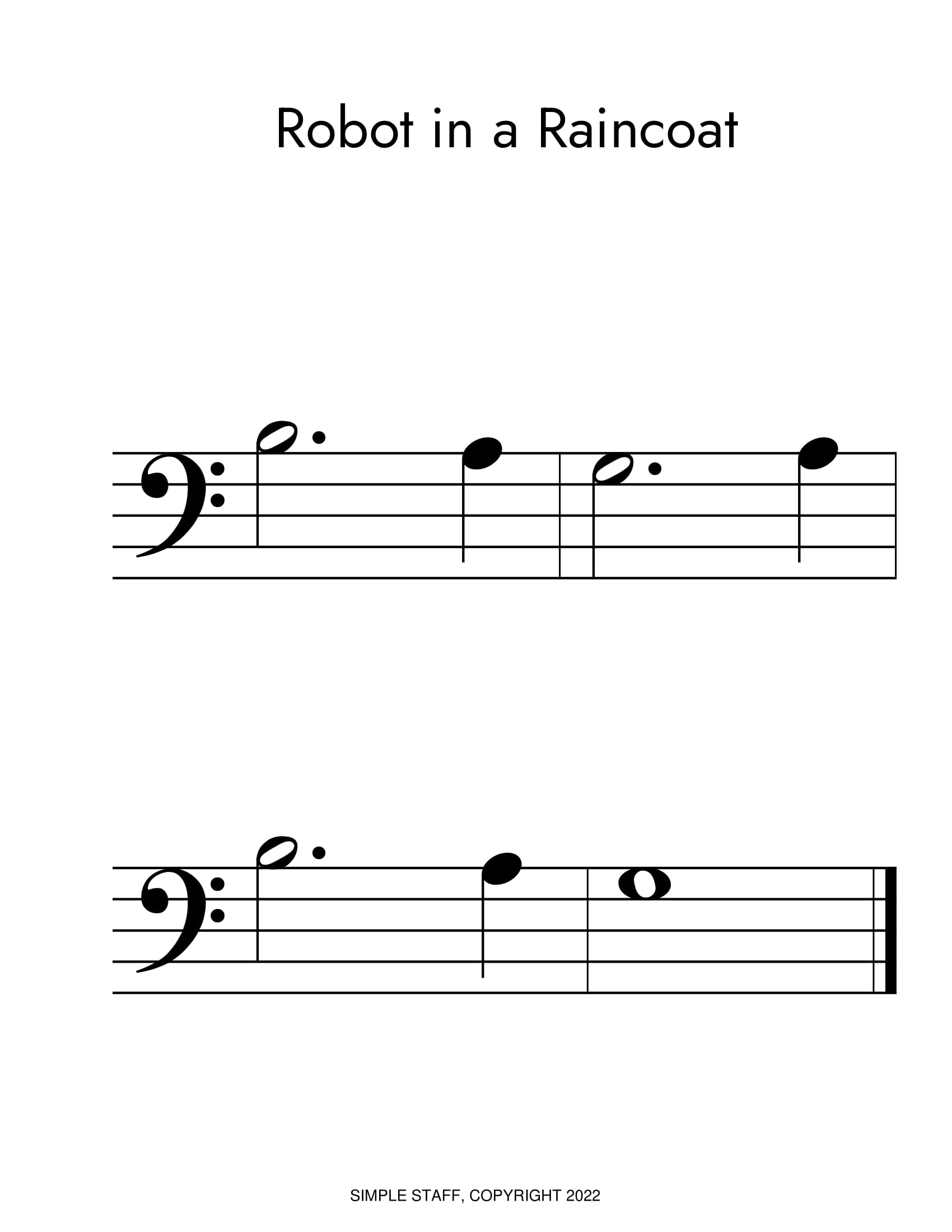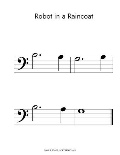 To focus on reading, each piece is written in only one clef, and aspects of music, such as time signatures, dynamics, articulation, tempo markings, finger numbers, etc., have been intentionally omitted.